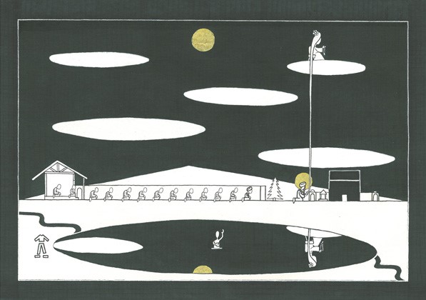 نازنینی در آن گلستان زندگی ﻣﻰکرد، که همیشه در کار مردم آن جا حیران بود. بیشﺗﺮ، نگاهش را به آسمان ﻣﻰدوخت. یک بار در گلستان گردش ﻣﻰکرد که آواز سوزناکی شنید. بلبلی در فراق گلی ﻣﻰخواند. دلش برای بلبل سوخت. صدا را دنبال کرد تا به یک نردبان رسید؛ نردبانی بسیار بلند؛ آن قدر بلند که در میان ابرها ناپدید ﻣﻰشد. تا آن زمان نردبانی ندیدهﺑﻮد. بلبل روی پلهﻯ اول نردبان نشسته بود. نازنین سر به هوا خواست جویای حالش شود، که بلبل پرواز کرد؛ و رفت. باز سرش را به سمت آسمان گرداند.